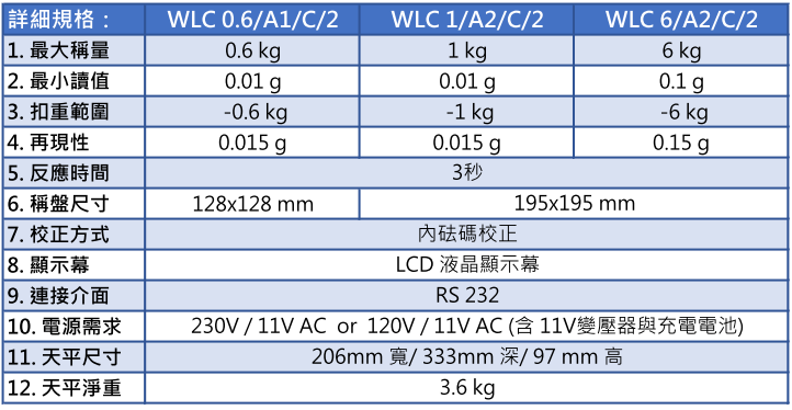| 1. 最大稱量 | 0.6 kg | 1 kg | 6 kg |