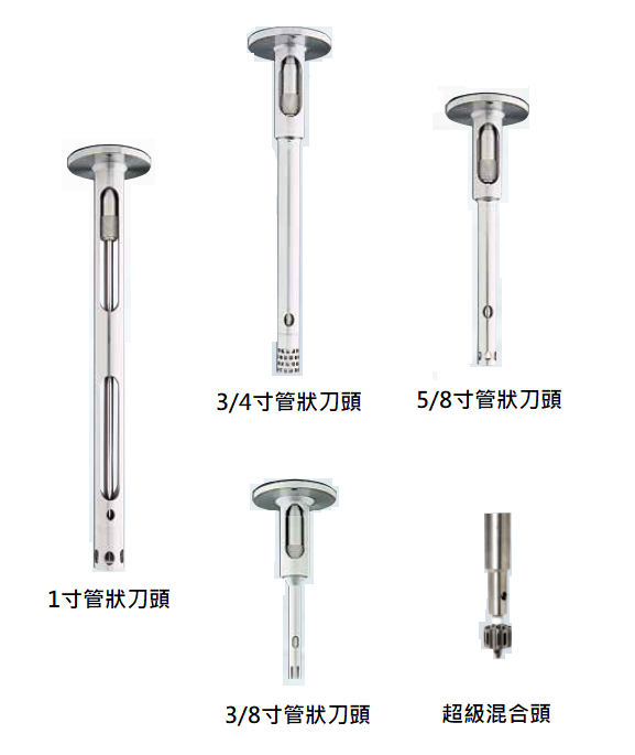 ● 含四種刀頭:一般泛用型刀頭 (GPDH)、標準乳化刀頭(EMSC)、方孔高剪切刀頭(SQHS)與軸流頭(AFLH)