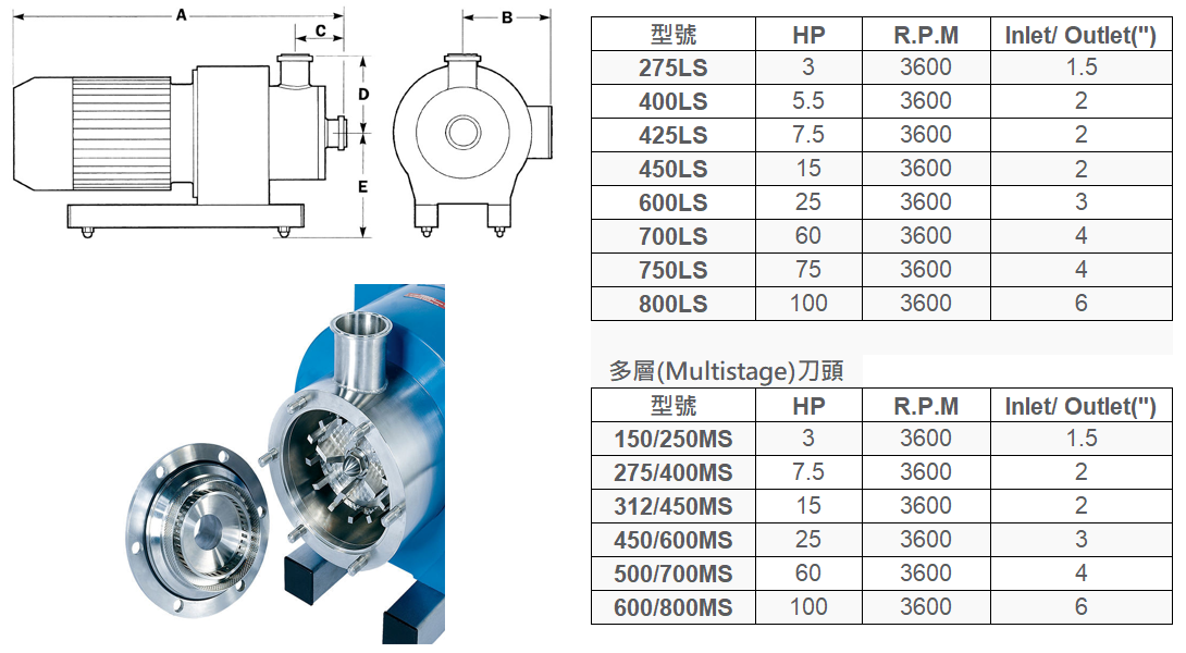 ●具備多層(Multistage)刀頭機種提供更快的處理速度,在一次通過(Single-pass)應用中能處理更多種的原料或達到更好的效果