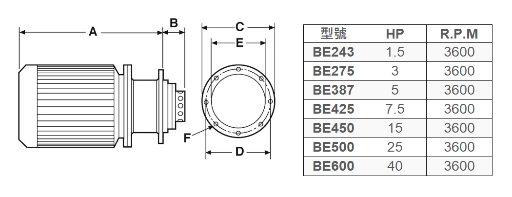 型號 | HP | R.P.M | |||||