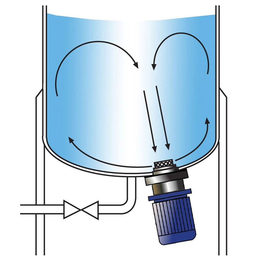槽底混合均質機是裝設在桶槽的底部或側邊,最常見的用途為搭配錨式或刮刀葉片的慢速攪拌機一併使用,處理高黏度產品。槽底混合均質機能達到產品均質的效果,而透過慢速攪拌機,將均質過的產品在桶槽中做均勻的攪拌,是處理高黏度化妝品、食品、藥品等相關產品的理想選擇