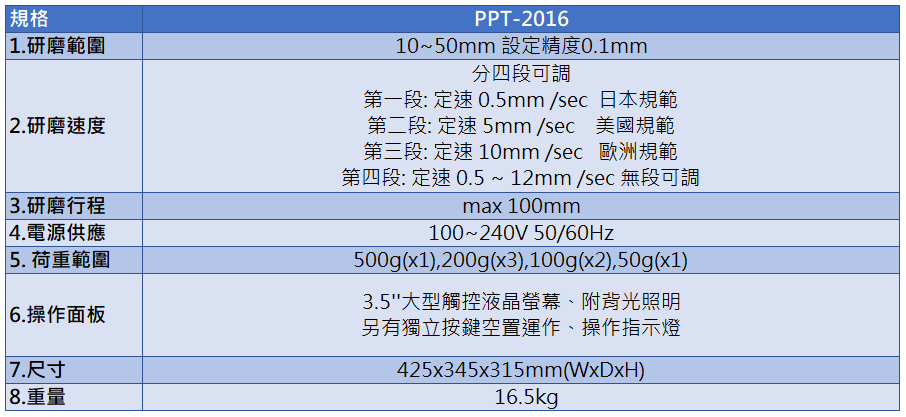 1.研磨範圍 10~50mm 設定精度0.1mm