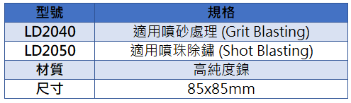 ●採用高純度鎳(Nickel)材質製作,適合塗裝、防鏽、噴砂、電鍍... 等表面處理