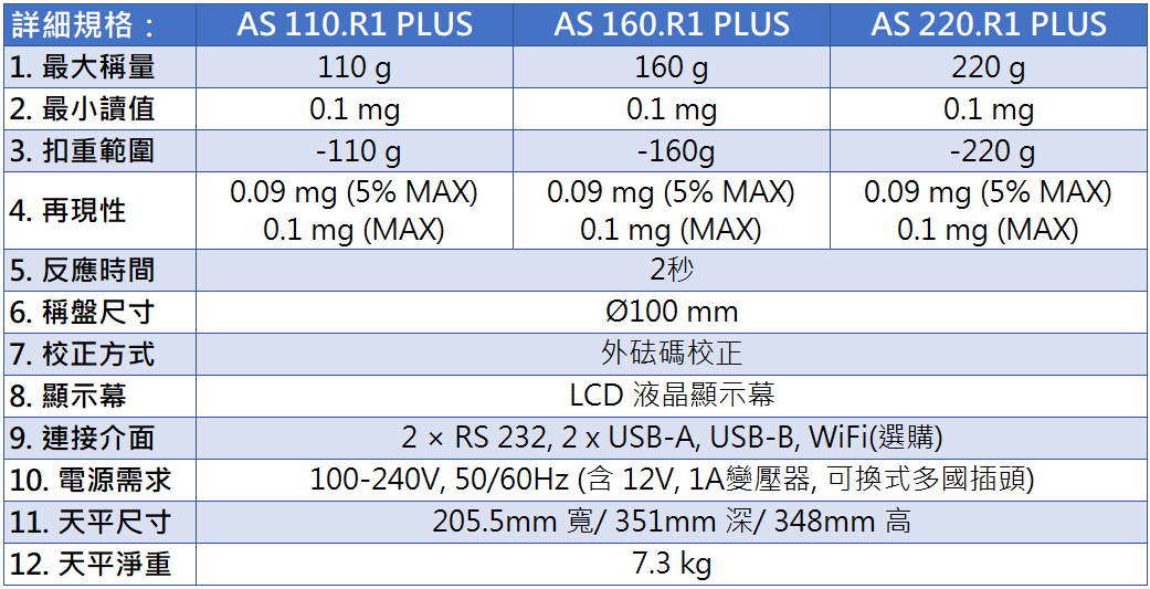 1. 最大稱量 110 g 160 g 220 g