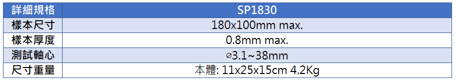 荷蘭TQC原裝進口。以特殊的圓錐型軸心、測試軸心直徑3.1~38mm所產生之不同折彎程度下,樣本之光澤處理、表面塗佈之附著力、彈性及延展性
