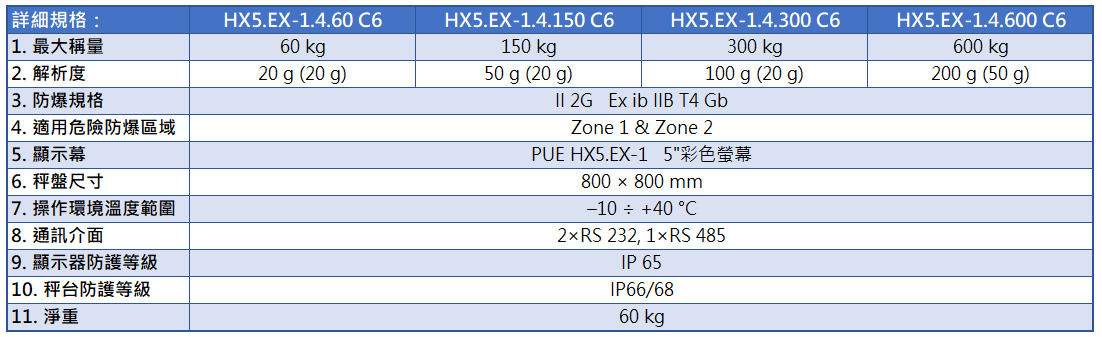 ● 防護等級: 指示器 IP66/68、秤台 IP65