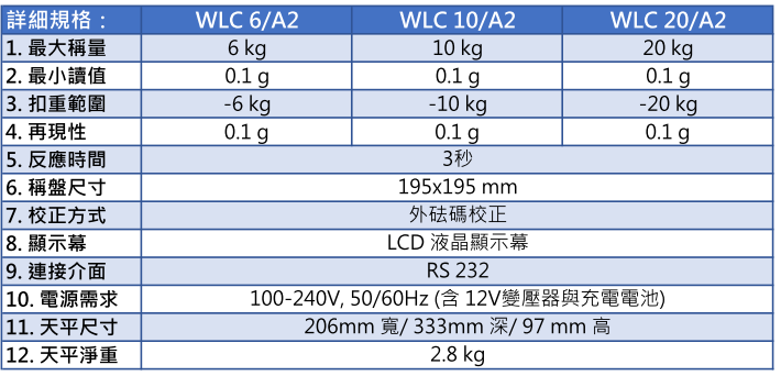 | 1. 最大稱量 | 6 kg | 10 kg | 20 kg |