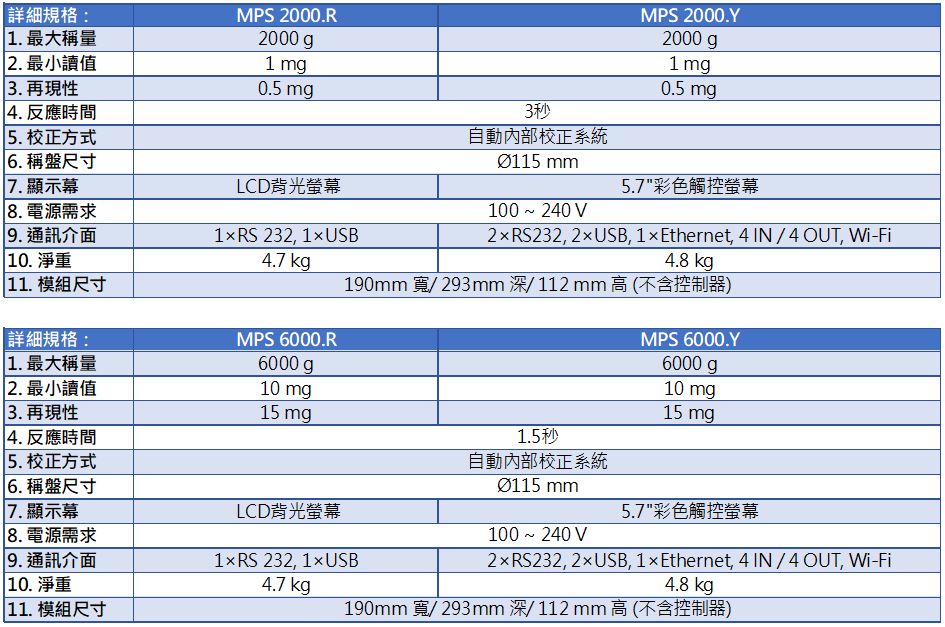 | 詳細規格 | MPS 2000.R | MPS 2000.Y |
