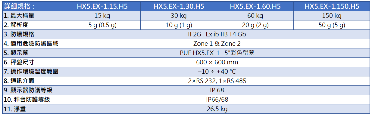 HX5.EX 防爆台秤H型 (適用於嚴苛環境)