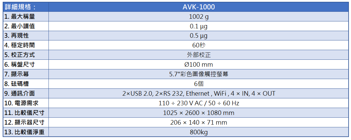 | 11. 比較儀尺寸 | 1025 × 2600 × 1080 mm |