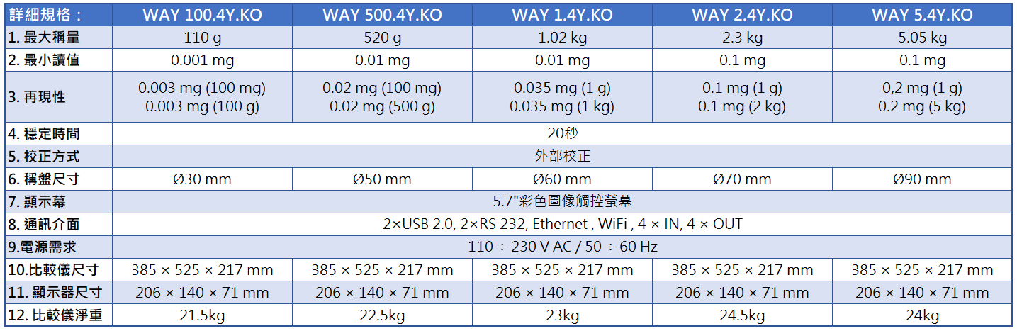 | 2. 最小讀值 | 0.001 mg | 0.01 mg | 0.01 mg | 0.1 mg | 0.1 mg |