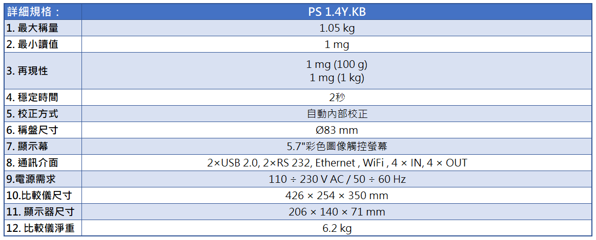 1. 最大稱量  1.05 kg