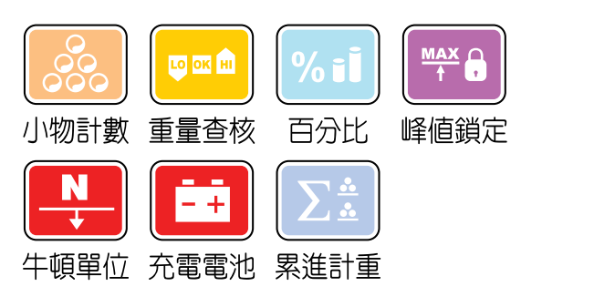 4. 應用模式:小物計數、百分比、重量查核、累進計重、動物秤重、峰值鎖定