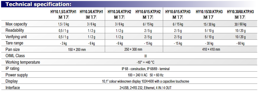 HY10.KTP系列配有控制包裝貨物的模組。該模組由包含產品和運營商列表的數據庫支持。在控制預定量的包裝(樣品)後,由秤開始的控制自動停止。包的數量由比例程序根據產品批量大小決定。秤具有10,1“彩色圖形觸摸屏顯示器和完整的字母數字鍵盤輔助刻度操作和設置控制參數。