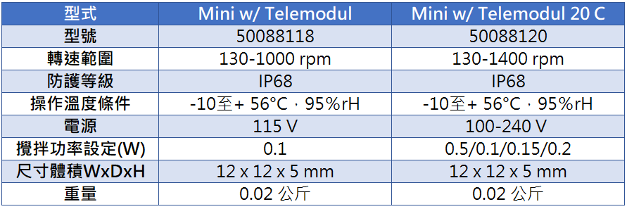 | 型式 | Mini w/ Telemodul | Mini w/ Telemodul 20 C |