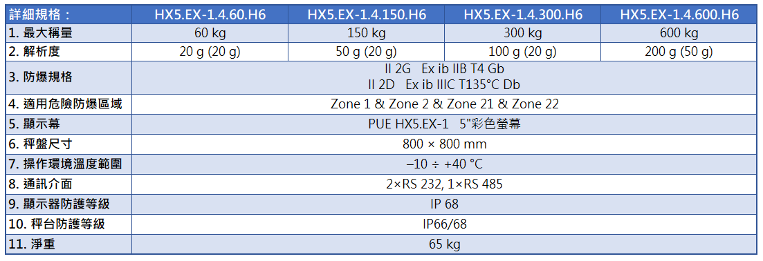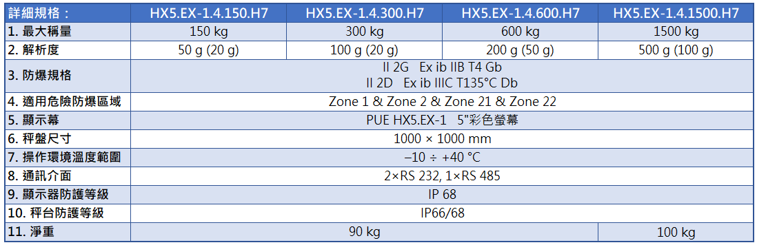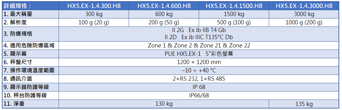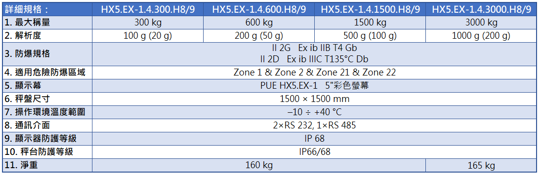 ● 防護等級: 指示器 IP66/68、秤台 IP68