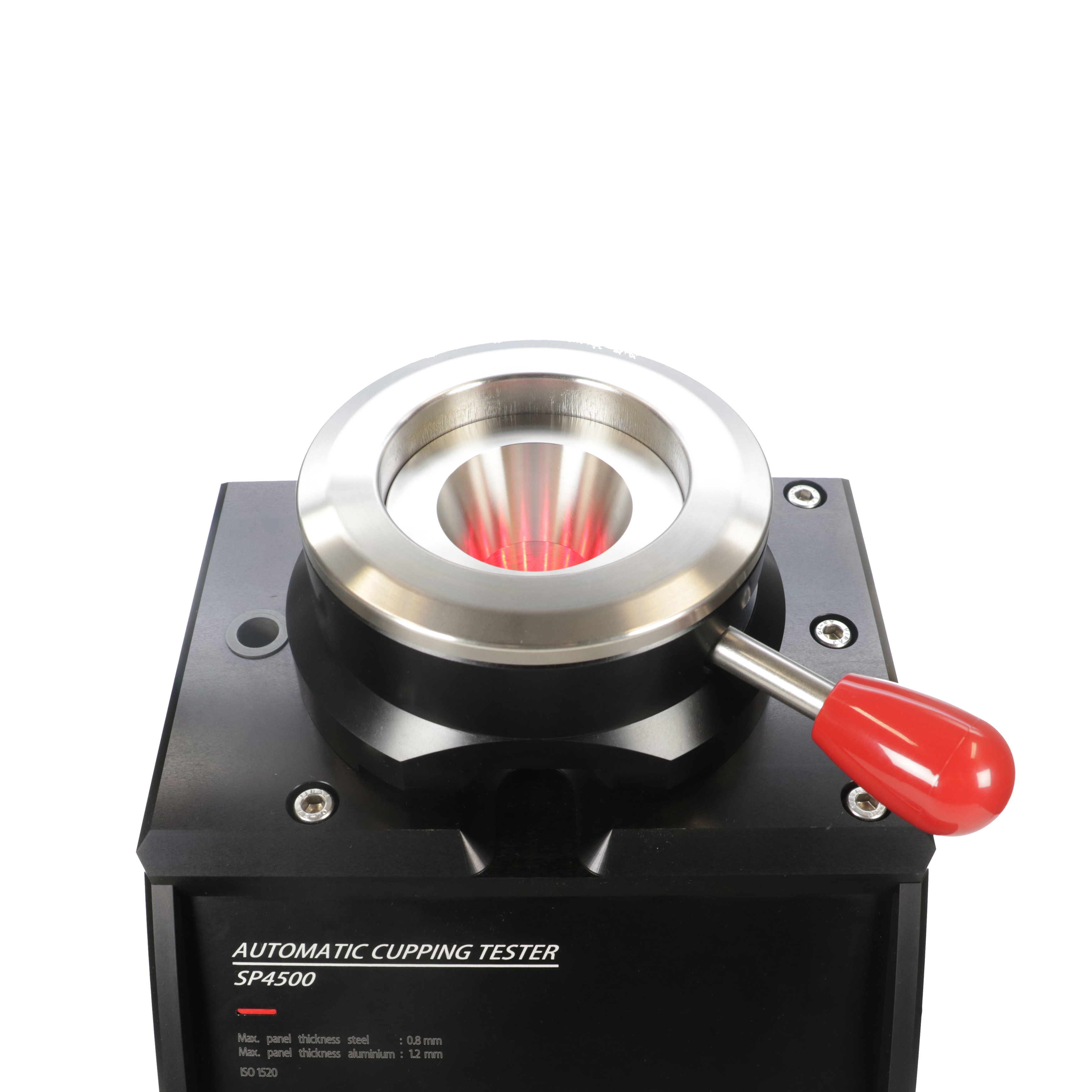 ●根據 ISO 1520 標準,必須對樣本施加 0.1~0.3mm/s 穩定頂迫壓力、連續且不可中斷;本機具備精密電動步進馬達,能以 0.01mm 提供精密壓迫力,能輕鬆測試較厚之鋼質試樣