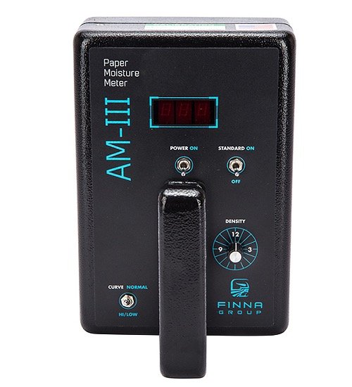 FINNA (原名AQUA) 紙捲水分計 AM-III 可快速測量滾動紙卷、棧板紙堆、令紙的水份含量,直接以百分比(%)數字顯示。可記憶 11 組校正曲線,適合各種紙類,包括:漂白硫酸鹽紙板、商標紙、箱板紙、紙巾紙、皺紋紙、漿片、新聞紙、捲煙紙、膠膜… 等。