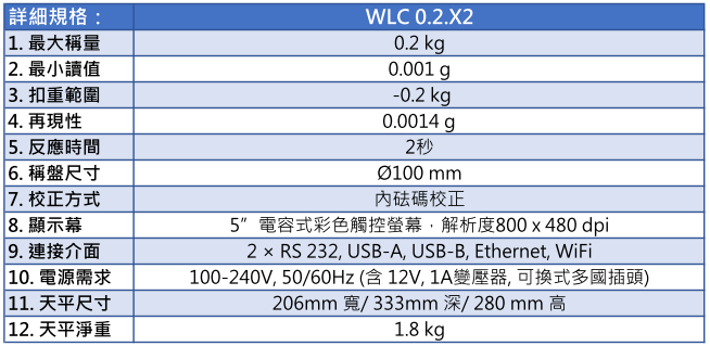 | 12. 天平淨重 | 1.8 kg |